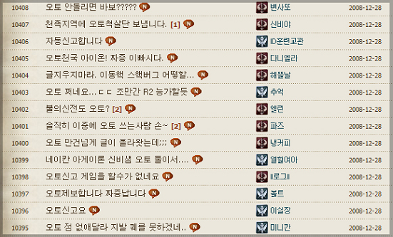 여기서 질문 하나. 블럭 당하는 오토수가 더 많을까, 새로 생기는 오토수가 더 많을까? 간단한 덧셈뺄셈의 원리다. 정답을 유저들이 게시판에 남겼다.